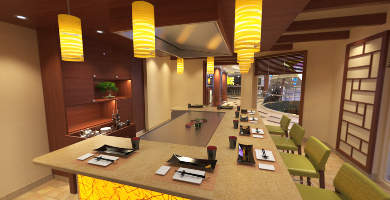 Carnival Cruise Line is planning to expand their popular Asian Restaurant onboard their newest cruise ship Carnival Horizon. The Bonsai Sushi specialty restaurant will be expanded to include a Teppanyaki experience.