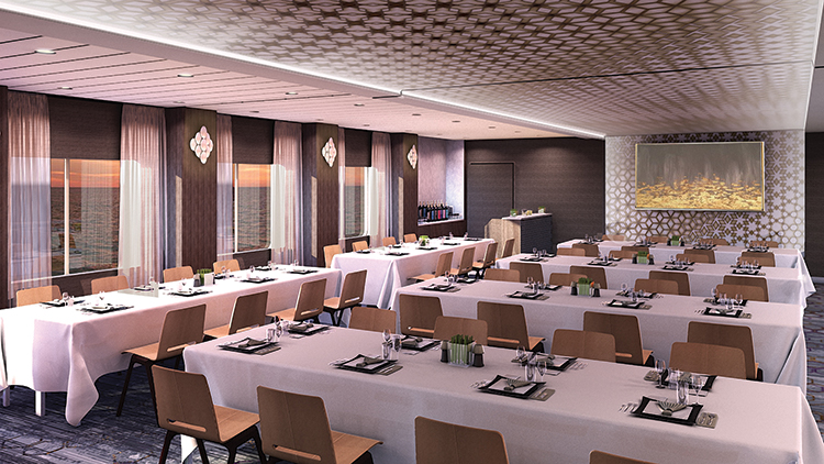 The Meeting Place will feature innovative technology at guests’ fingertips. Audiovisual systems — from wireless microphones to a mini sound board — come as standard equipment. An electronic whiteboard helps capture brainstorming sessions easily, while the impressive 98-inch and 75-inch LED screens add a powerful punch to business meetings and a subtle mood for social occasions.