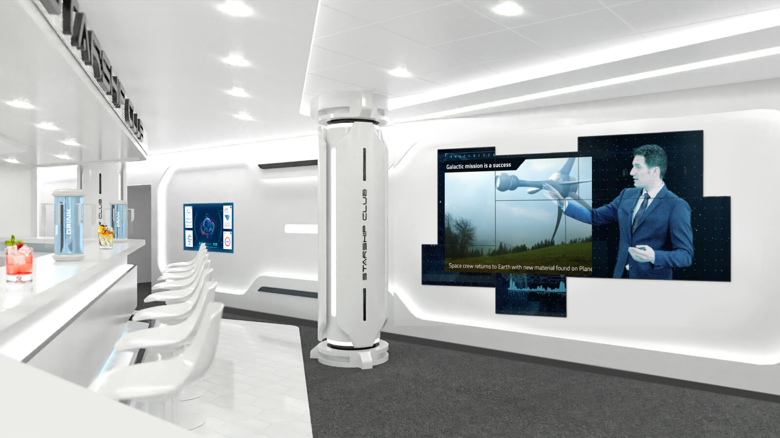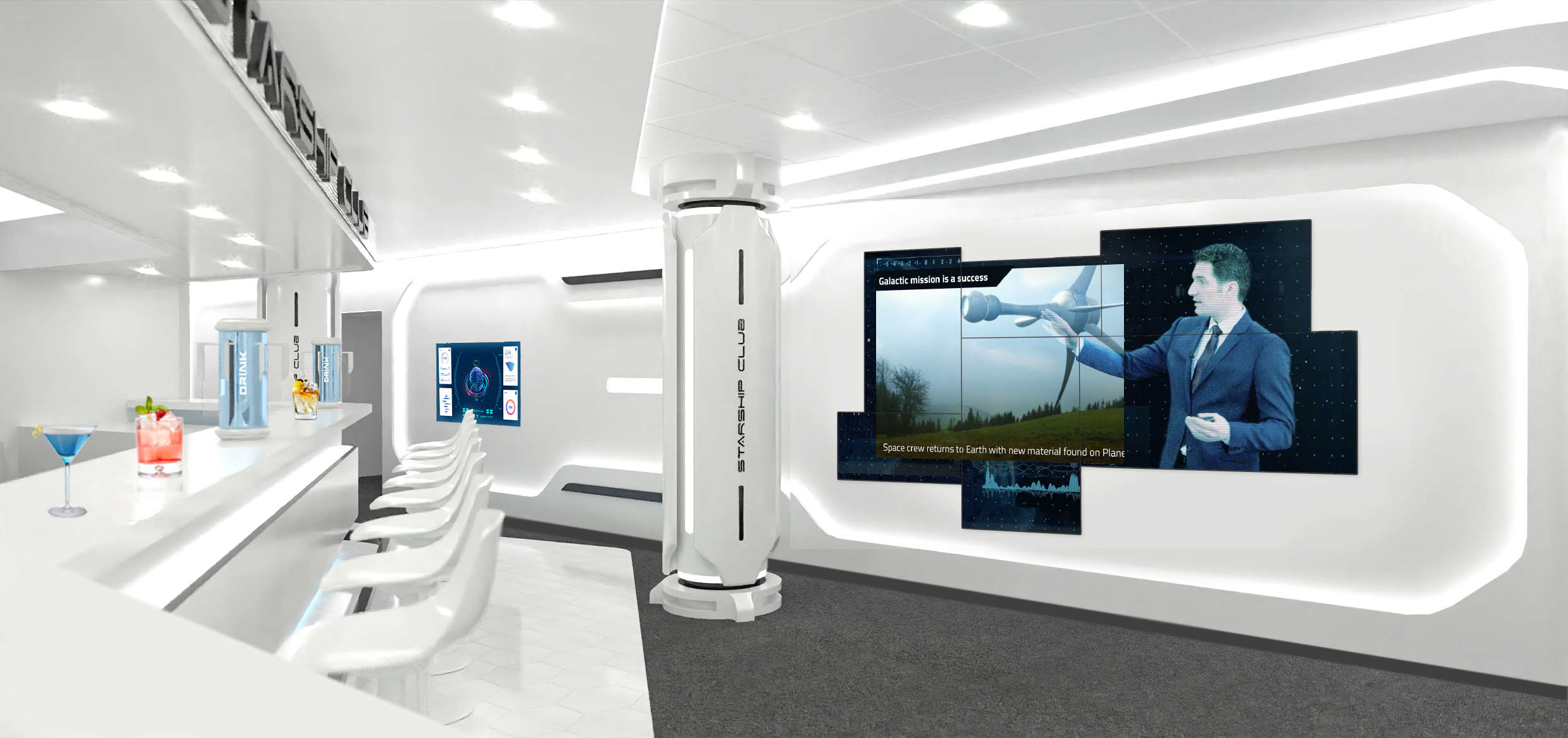 The status of the cocktail preparation will be displayed through digital monitors and a ticker-tape-style LED strip above the robotic island while guests are immersed in the space-themed experience. The cosmic cocktails are served in custom-designed futuristic glasses for guests to collect as lasting souvenirs of the MSC Starship Club experience. Cruisers will be able to return to the club multiple times over the course of their cruise, experiencing a new interaction with Rob each time.