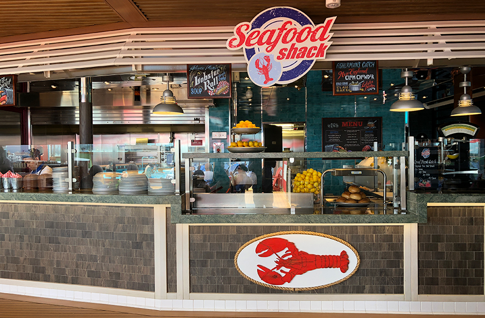 A relatively new option onboard Carnival Cruise Line is the Seafood Shack. With its simple New England inspired decor, you’ll find fresh seafood selections at reasonable prices. My son and I planned to share a lobster roll, since this was stop one of a two stop lunch crawl, but to my surprise, they actually give you two rolls along with a side of fries. The roll was perfect and the fries were nice and crispy.