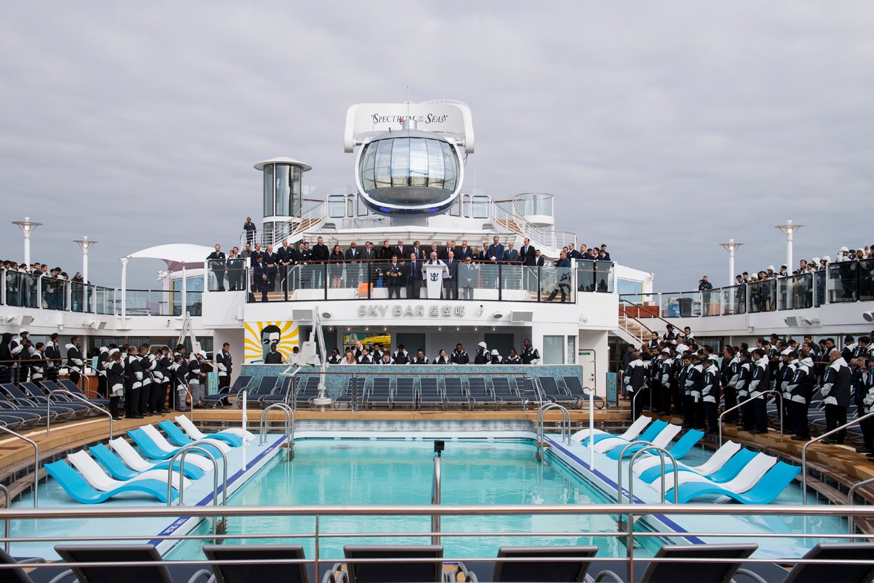 Royal Caribbean International officially welcomed Spectrum of the Seas, the line’s first Quantum Ultra Class cruise ship, to their every growing fleet. At a ceremony held today in Bremerhaven, Germany, Royal Caribbean Cruises Ltd. Chairman and CEO Richard D. Fain and President and CEO of Royal Caribbean International Michael Bayley received the new ship from Meyer Wert Yard’s Managing Partner Bernard Meyer and Meyer Werft Yard’s Managing Director Tim Meyer at the official handover ceremony. Spectrum will homeport from Shanghai starting June 2019.