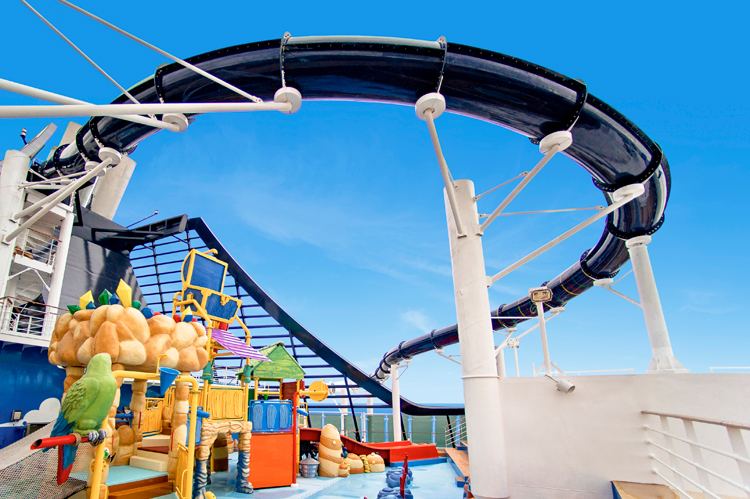 Onboard Carnival Sunshine, you’ll enjoy one of the biggest Carnival WaterWorks in the fleet. Carnival guests are used to fun water slides, but when Carnival Destiny was transformed into Carnival Sunshine in 2013, the cruise line went big on the splashing thrills and chills. Along with the signature twister waterslide, Speedway Splash puts riders head-to-head in a timed race. The dual 235-foot long slides feature quick turns, lighting effects and even checkered flag sections to amp up the competitive fun of challenging friends and family to splashing speed superiority.